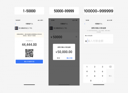 金額超出限制后,通過組件toast提示“付款金額超限”,第一提示框組件很好的限制鍵盤的數(shù)字輸入,避免用戶無效輸入,第二toast提示框的觸發(fā)時(shí)機(jī)設(shè)計(jì),這里的方案是當(dāng)輸入金額超百萬,按數(shù)字鍵盤的時(shí)候就會給予提示,而不是等用戶輸入完之后,再去按確認(rèn)鍵的時(shí)候,彈出來提示金額超限。