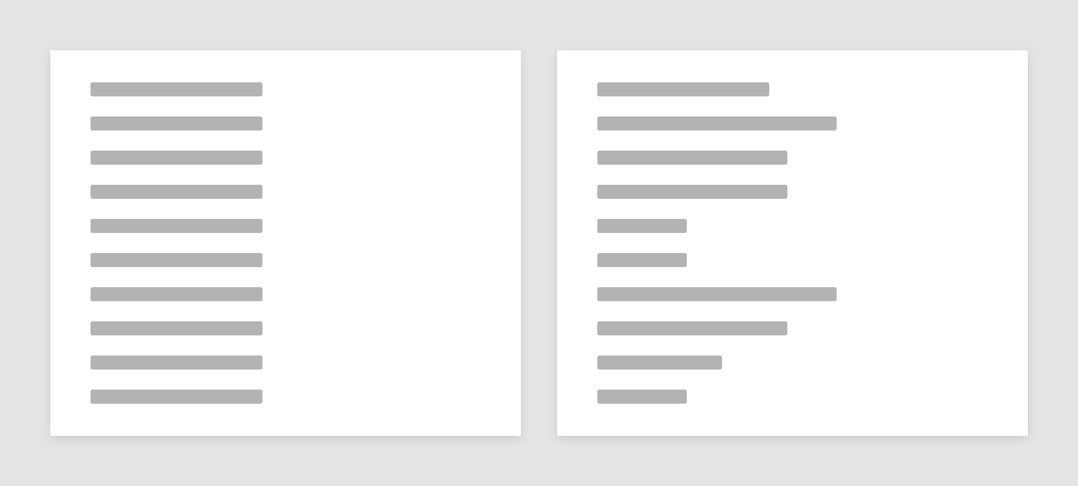 在實際業(yè)務(wù)中,設(shè)計師常常習(xí)慣把每個表單字段都設(shè)置成相同的寬度,在視覺效果上看感覺會比較統(tǒng)一,但是這種做法實際上體驗欠佳。字段的寬度應(yīng)該向用戶暗示所需輸入內(nèi)容的長度從而減輕判斷負(fù)擔(dān)。在Ant Design 4.0 系列分享的文章《整齊劃一?不如錯落有致》中分析到錯落有致的排版表現(xiàn)似乎比整齊劃一的左圖更舒適,因為在視覺上我們更容易將右圖的空間和內(nèi)容視為一個和諧的整體。但左圖過度的對齊導(dǎo)致暗示隱性的截斷,我們慣性視覺會產(chǎn)生表單字段右側(cè)空間缺了一大塊的錯覺。
