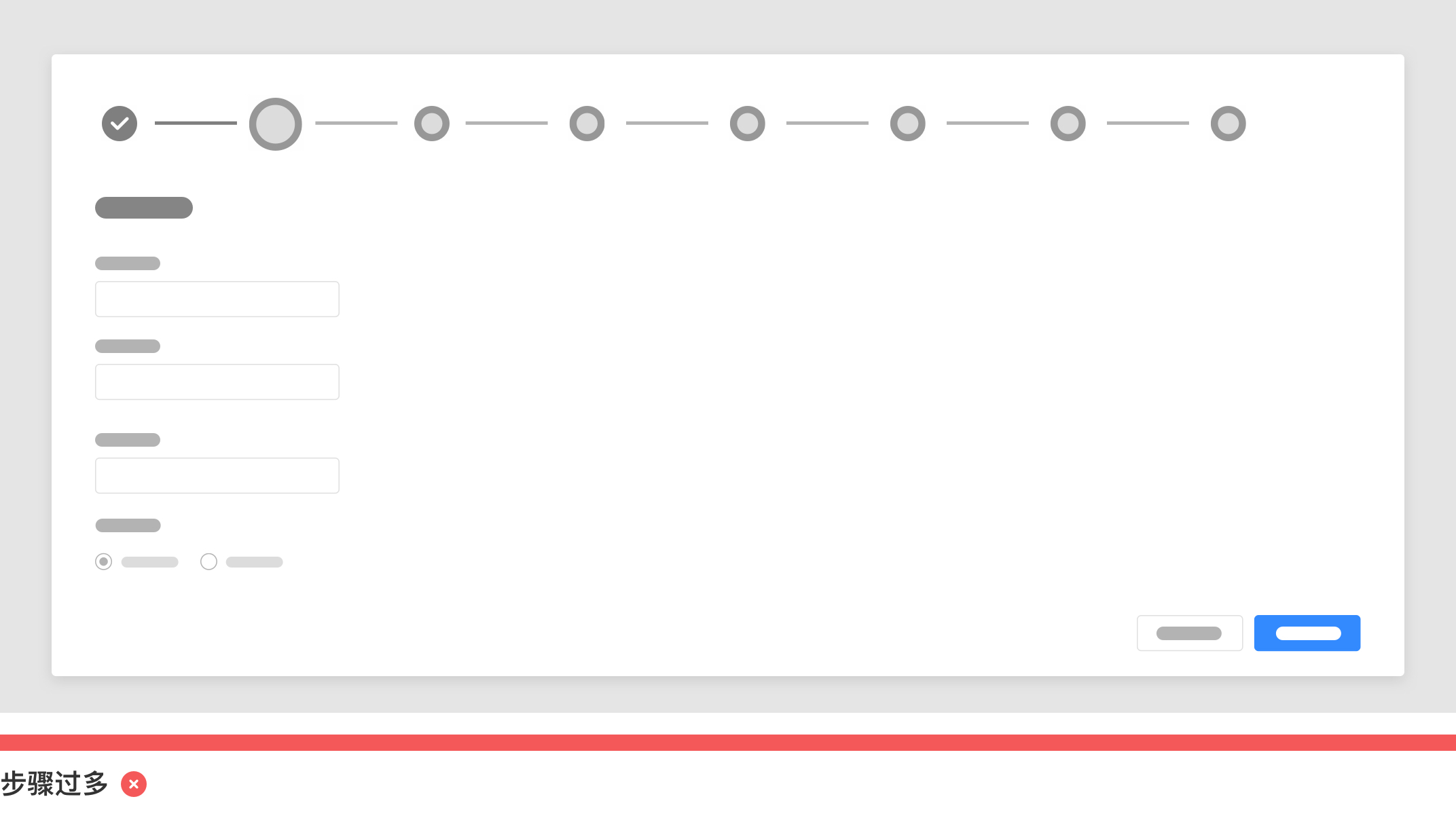 但是設(shè)計師需要注意的是不要太過于細(xì)化步驟以及在小型彈出窗出現(xiàn)過多的步驟,過多的步驟不利與用戶填寫和記憶,反而增加用戶負(fù)擔(dān)。