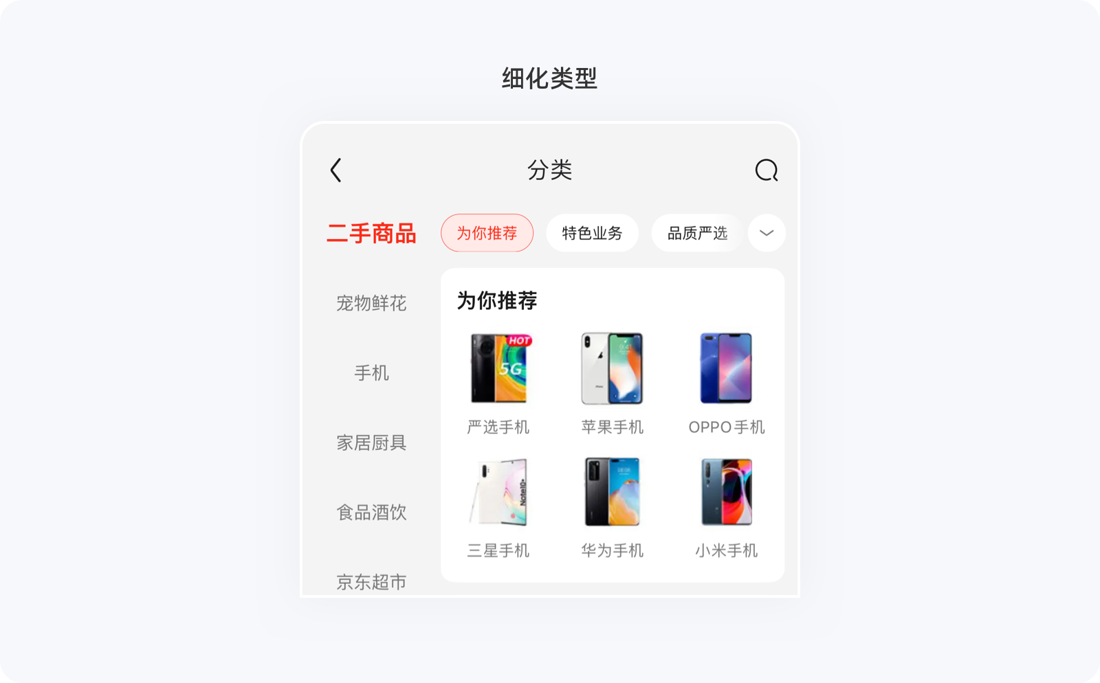 這里最為典型的例子就是電商平臺的分類,它通過一級、二級、甚至三級分類將商品所涉及到的類型合理的控制在有效范圍內(nèi),這些選項被分類/分組之后,關(guān)鍵信息得到強化,能輔助用戶快速作出決策。還有后面的二次篩選功能,幫助用戶進(jìn)一步縮小范圍,選擇效率明顯會更高。當(dāng)然,這不僅僅是依靠希克定律,還得結(jié)合運營需求、用戶數(shù)據(jù)等因素進(jìn)行合理化分類。