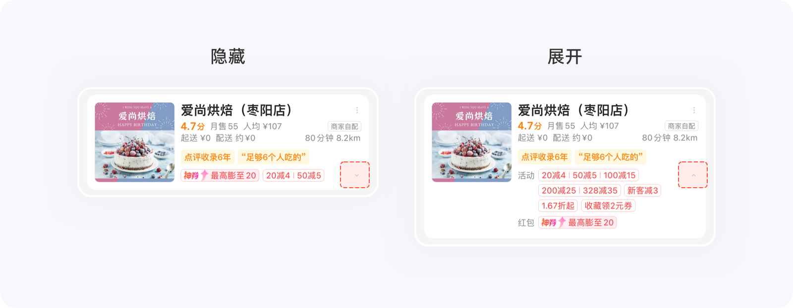 與刪除不同的是,隱藏并沒有刪減選項的數(shù)量,只展示部分常用、高頻的選項,去除其他信息的干擾,方便用戶快速做出決策,而將其他不常用、低頻選項隱藏起來,在需要時系統(tǒng)自動展示、或用戶手動喚出。其實,不管是交互四策略中的隱藏、還是希克定律中的隱藏,其作用都是通過暫時性地減少信息數(shù)量來提升用戶操作效率。