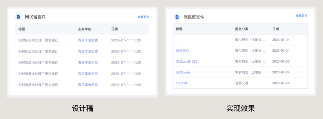 這就導(dǎo)致,如果前端開發(fā)使用了一款前端框架,那么設(shè)計(jì)稿中使用的組件是這套框架中帶的,那就直接調(diào)用這個(gè)樣式,只要功能實(shí)現(xiàn)出來(lái),樣式上能不改那就盡量不改。包括圖表也是,圖表也基本使用第三方的框架,所以實(shí)現(xiàn)出來(lái)和設(shè)計(jì)稿最多就是顏色接近,其它哪里都不像,比如下面的真實(shí)案例。