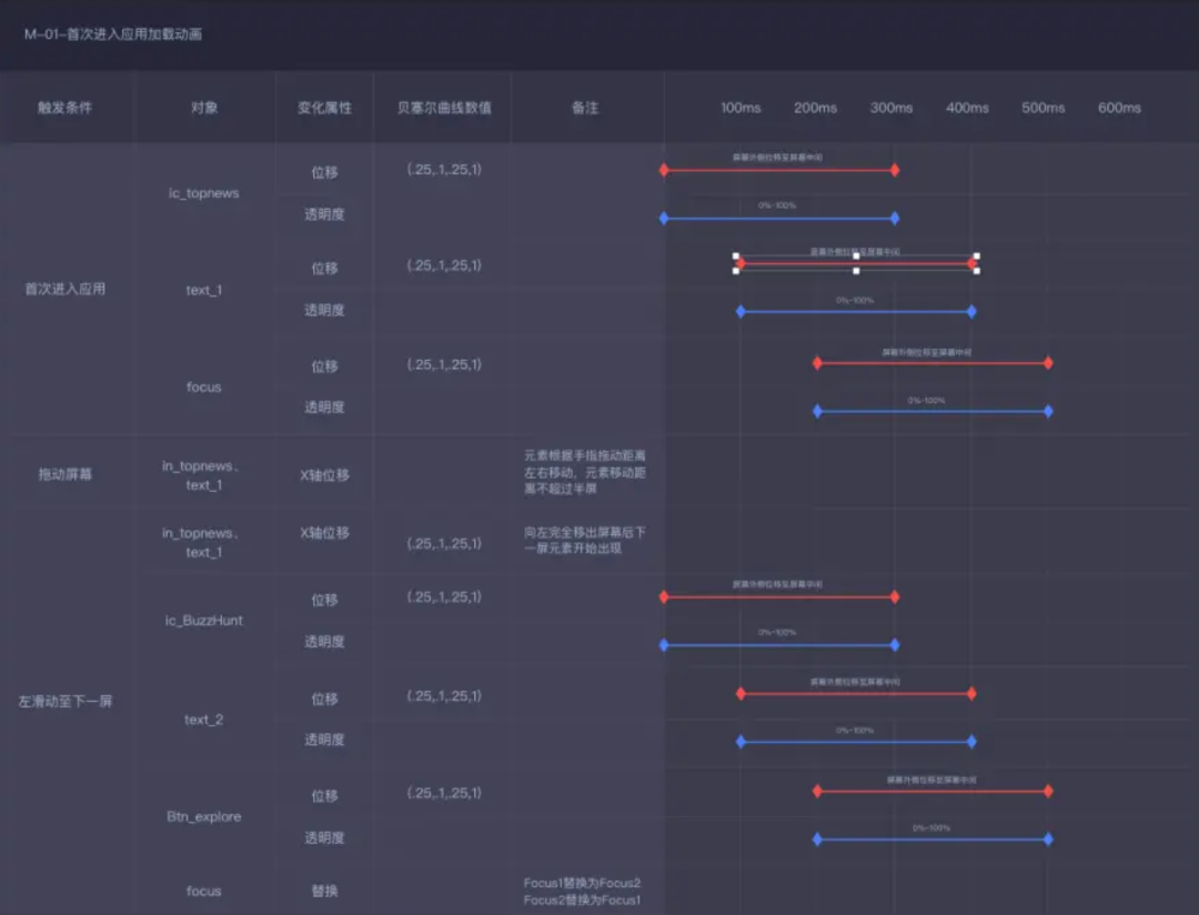 動(dòng)效的標(biāo)注需要非常具體,要有針對(duì)象的時(shí)間、屬性值、緩動(dòng)效果做出準(zhǔn)確的描述。