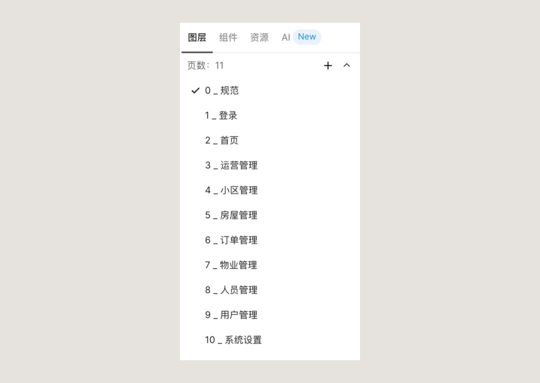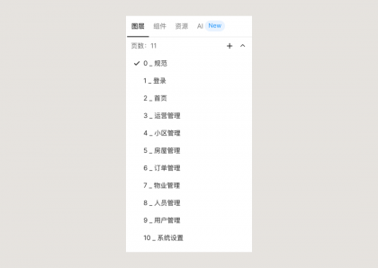 Page 就是軟件左上的畫布列表,一個(gè)項(xiàng)目如果頁(yè)面多,就一定要用 Page做拆分。而在我們當(dāng)前的場(chǎng)景中,就可以根據(jù)交付的模塊階段劃分,每個(gè)模塊創(chuàng)建一個(gè) Page,這樣開發(fā)在本次項(xiàng)目中只需要查看這個(gè)源文件就可以。