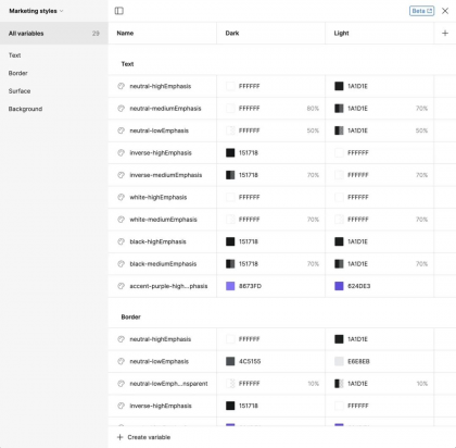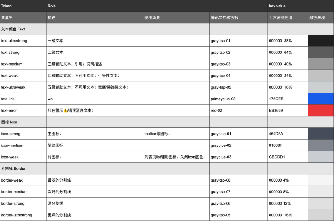 騰訊文檔顏色變量表 網(wǎng)上有很多關(guān)于如何使用軟件色彩樣式命名的方式來(lái)實(shí)現(xiàn) Token 應(yīng)用的案例,但隨著 Figma 的 Variables 功能的上線,新的應(yīng)用方式已經(jīng)改寫。同時(shí),Variables 可以實(shí)現(xiàn)除了色彩以外的更多屬性的更改,從而讓 Token 的應(yīng)用范圍在設(shè)計(jì)軟件中進(jìn)一步擴(kuò)大(國(guó)產(chǎn)軟件跟上也勢(shì)在必行)。