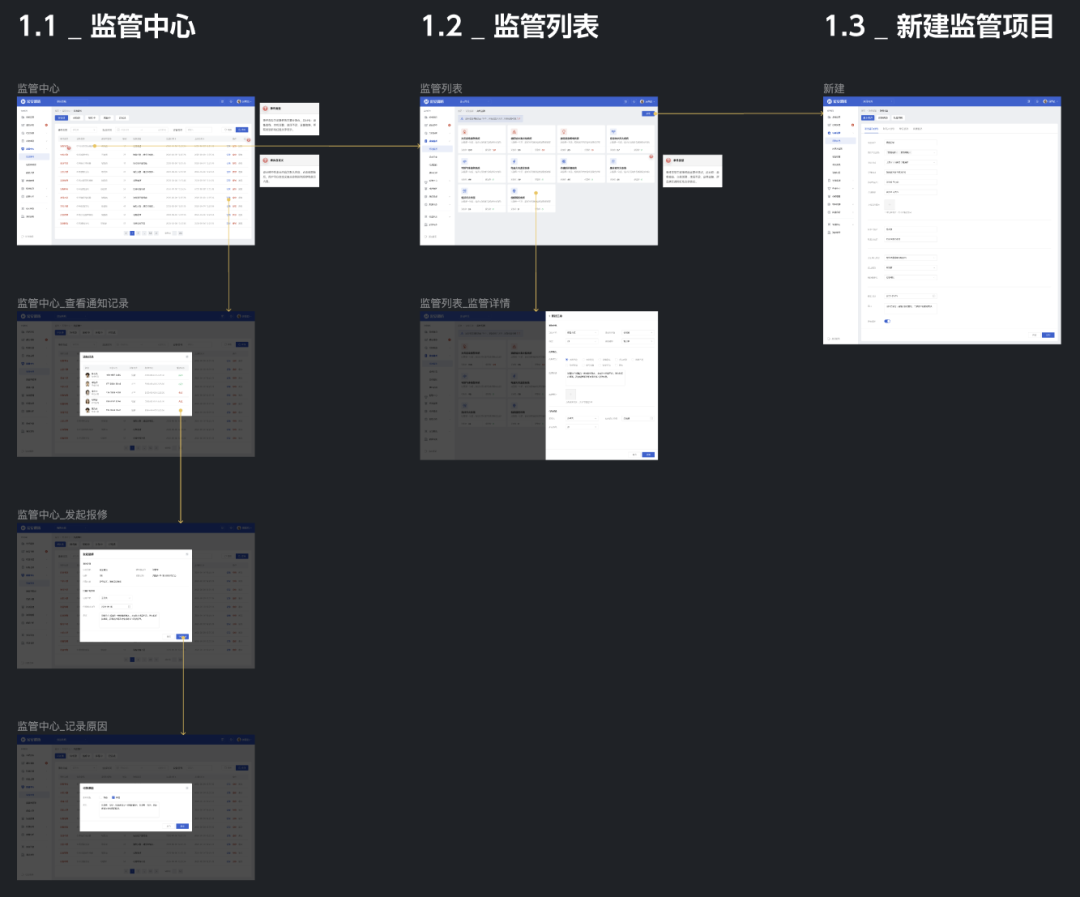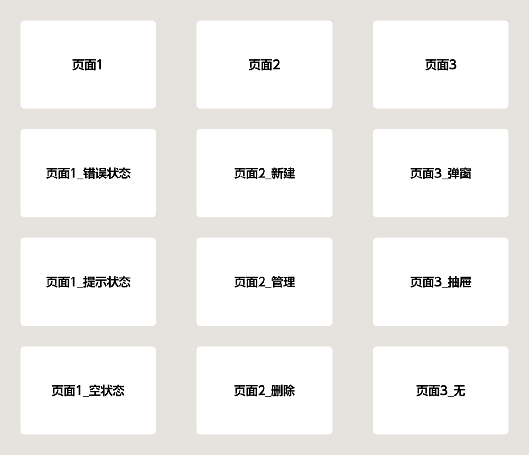排列頁(yè)面時(shí),也需要具有一定的邏輯,橫向一般表示不同的頁(yè)面,縱向表示同一個(gè)頁(yè)面的事件和狀態(tài)。并且橫豎間距盡量保持統(tǒng)一,建議左右不低于 800px,上下不低于200px 的間隔,這樣即不影響后續(xù)添加說(shuō)明,也不影響前端查看頁(yè)面時(shí)被其它頁(yè)面干擾。