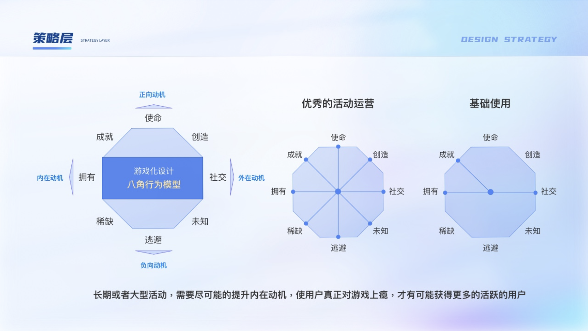 由于游戲本身對用戶就有一種天然的吸引力,加上可以很好的與運(yùn)營活動結(jié)合打造沉浸式體驗(yàn),越來越多活動都是與游戲結(jié)合來達(dá)到活動目標(biāo),也叫運(yùn)營的游戲化。核心宗旨是“以人為本”的設(shè)計理念,并不是以功能為中心,在設(shè)計時可以使用游戲化設(shè)計八角模型。