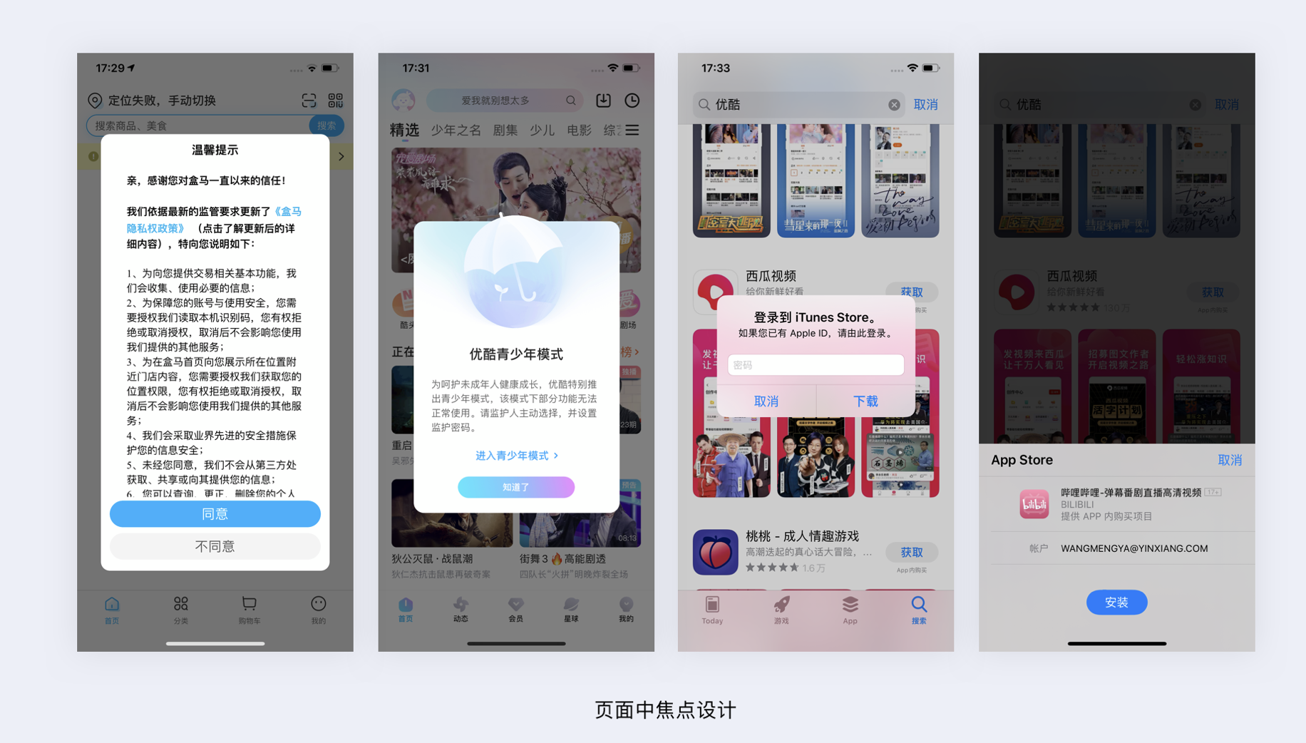 - 頁面焦點(diǎn):采用模態(tài)彈窗等不可忽視的方式,如盒馬隱私政策彈窗。