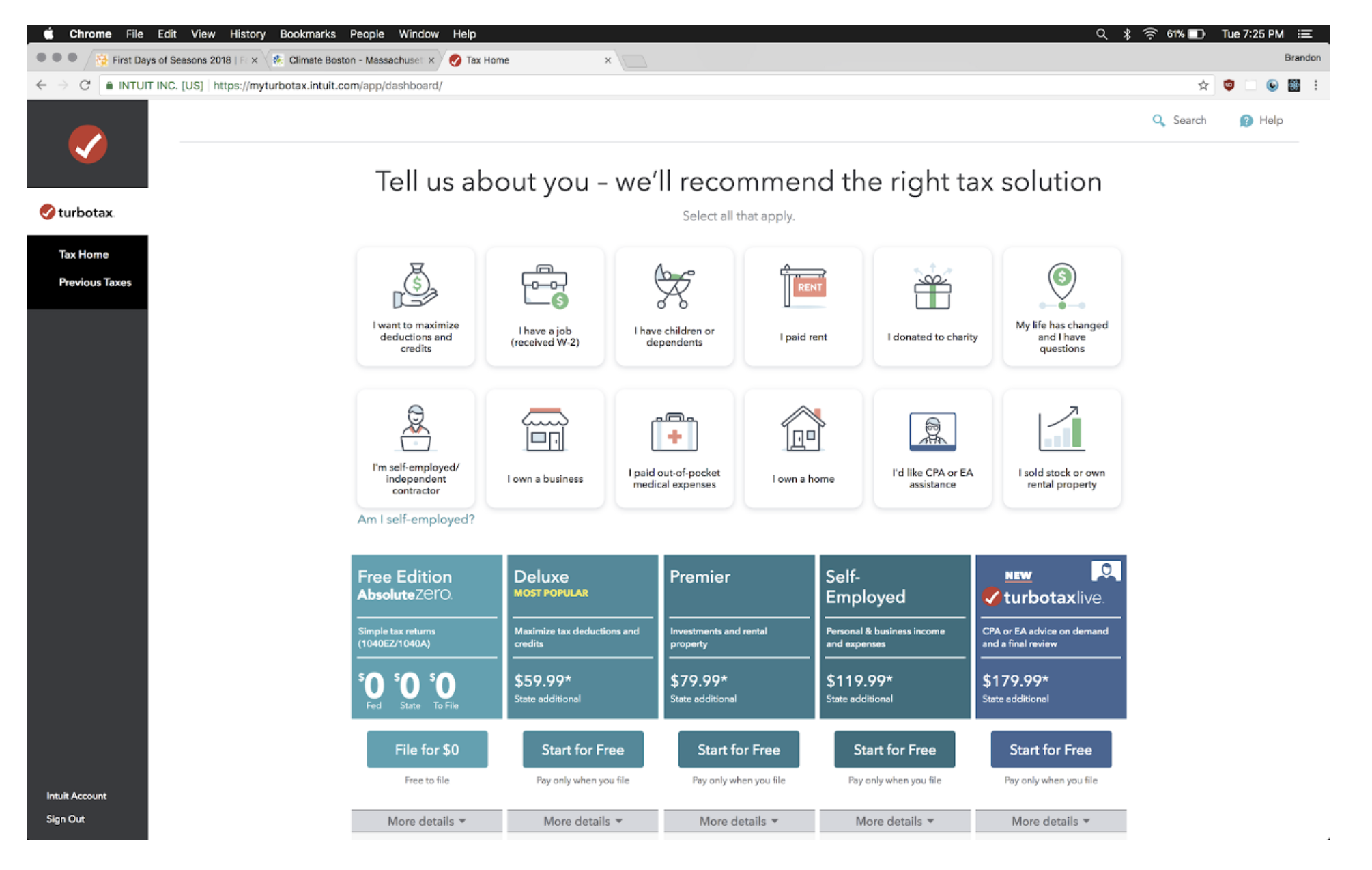 - 更高的辨識性:在網(wǎng)格布局中,圓角卡片的角落可辨別邊緣能引導眼睛識別視覺差異,更易計算卡片總數(shù),而尖角卡片看起來統(tǒng)一,不易吸引注意力,如 TurboTax 儀表板中,頂部使用圓角卡比中間使用尖角卡更引人注目。