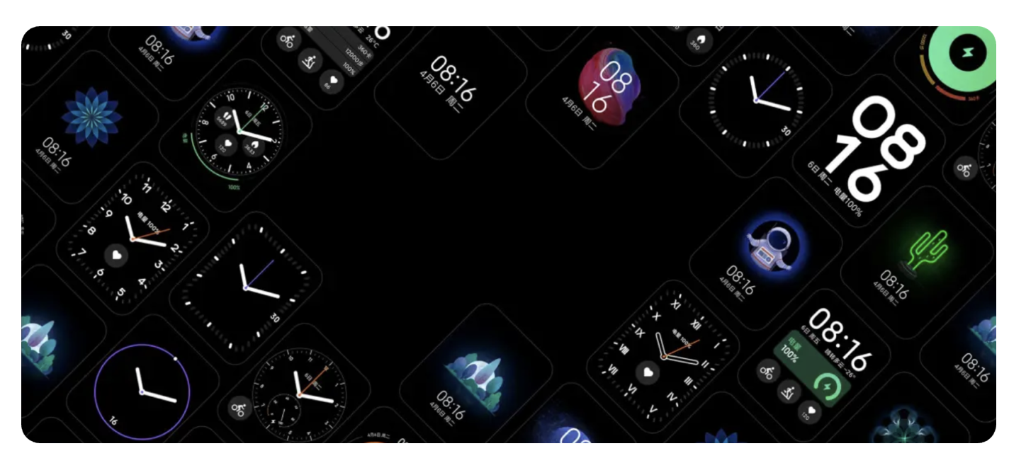 高飽和的熒光色則是 “點(diǎn)睛之筆”。比如小米智能手表的表盤,深灰色底色上用熒光橙做指針、熒光紫做功能圖標(biāo),在戶外強(qiáng)光下既能穿透光線,又不會(huì)像純白色那樣刺眼。但配色不能貪多,遵循