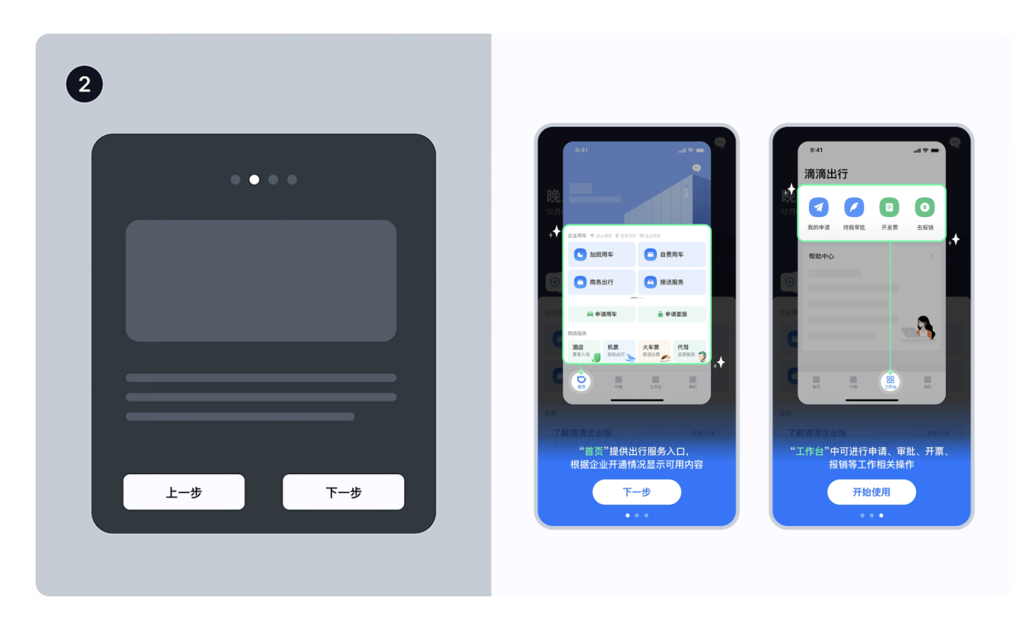 - 例子:滴滴企業(yè)版的新手引導(dǎo),先講 “首頁(yè)有出行服務(wù)入口”,再講 “工作臺(tái)能審批、開(kāi)票”,每步只傳遞一個(gè)信息,用戶不會(huì)覺(jué)得混亂;