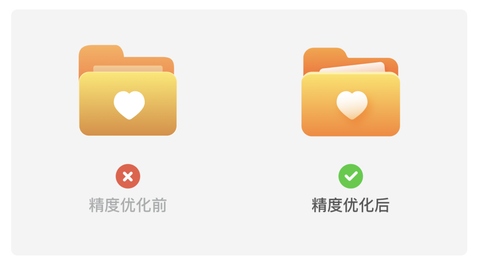 很多設計師認為圖標只要造型準確就夠了,但恰恰是這些 “不起眼” 的小元素,最能暴露設計功底。以常見的文件夾圖標為例,從 “能用” 到 “精致”,只需要 4 個關鍵調(diào)整:
