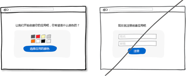 與其讓用戶馬上注冊,何不讓用戶先進(jìn)行一些體驗式的操作呢。這個體驗過程可以展示程序的功能,特性等。一旦用戶通過簡單幾步的操作了解了程序的價值所在,那么它會更愿意填寫注冊表單的。這種循序漸進(jìn)的引導(dǎo)可以盡量推遲用戶注冊的時間但又可以讓用戶在沒注冊的情況下進(jìn)行個性化設(shè)置等簡單操作。
