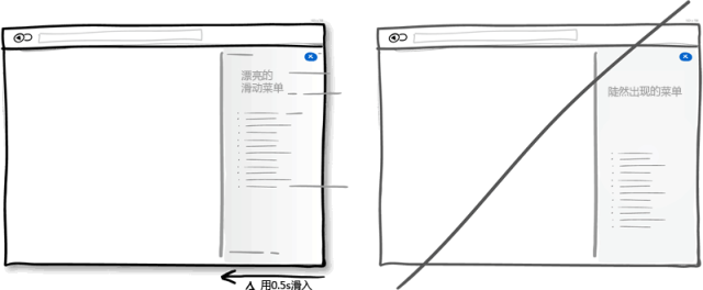 用戶進(jìn)行操作過程中,界面上的元素會經(jīng)常出現(xiàn),隱藏,打開,關(guān)閉,放大縮小移位等。給這些元素增加些自然的動畫,淡入淡出效果不但美觀,也更符合實際,本來元素尺寸位置的變化就是一個需要時間的動畫過程。但要注意動畫時間不要設(shè)置過長,那樣會讓想盡快完成操作的用戶不耐煩。