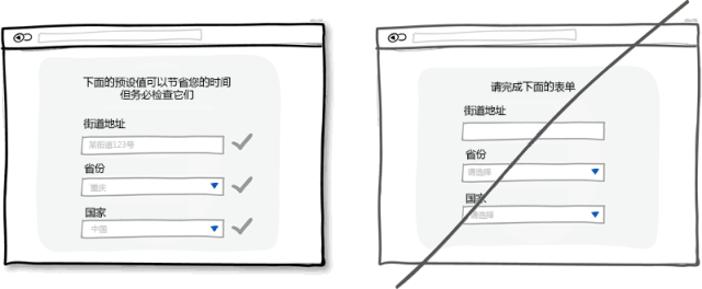 適當(dāng)?shù)哪J(rèn)值和預(yù)先填充好的表單字段可以大量減少用戶的工作量。在節(jié)省用戶寶貴的時間上面,這是種非常常見的做法,可以幫助用戶快速填完表單或者注冊信息。