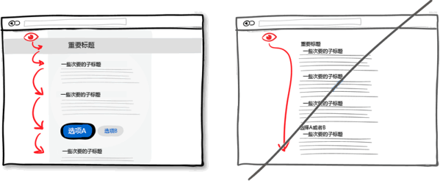 具有層次的設(shè)計可以將界面上重要的部分與不次要部分區(qū)分開來。要讓界面層次分明,可以在這些方面做文章:對齊方式,間距,顏色,縮進(jìn),字體大小,元素尺寸等。當(dāng)所有這些調(diào)整運用得適當(dāng)時,可以提高整個界面的可讀性。相比在一個很直白的界面上用戶一眼就可以從上瞟到底的設(shè)計,這樣分明的設(shè)計也可以讓用戶放慢速度來慢慢閱讀。這樣也使界面更有特色一些。就好比一次旅行,你可以乘坐高鐵快速到達(dá)景區(qū)(從頁面頂部瞟到底部),但你也可以慢行以欣賞沿途風(fēng)光。所以層次分明的設(shè)計讓眼睛有可以停留的地方,而不是對著空白單調(diào)的一個屏幕。
