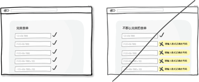 對用戶輸入的數(shù)據(jù),盡量放寬限制,包括格式,大小寫什么的。這樣做可以更人性化一點,也使得界面更加友好。一個再恬當(dāng)不過的例子就是讓用戶輸入電話號碼的時候,用戶有很多種輸入方式,帶括號的,帶破折號的,帶空格的,帶區(qū)號和不帶區(qū)號的等等。如果你在代碼中來處理這些格式的問題,代價也只是你一個人多寫幾行代碼而以,卻可以減少無數(shù)用戶的工作量。