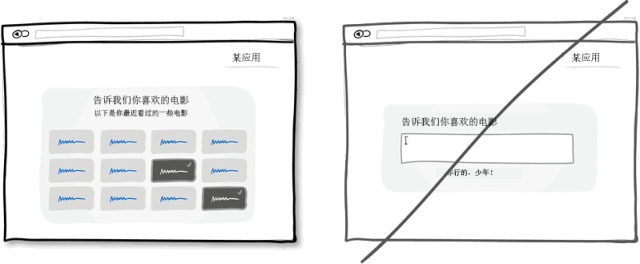 這一界面設(shè)計中的經(jīng)典準(zhǔn)則是有心理學(xué)依據(jù)的,相比要讓某人回想想某樣?xùn)|西,從一堆東西中認(rèn)出某樣?xùn)|西會更容易些。辨識出一樣?xùn)|西只需要我們稍微回憶一下,通過一些線索就可以完成。而回想則需要我們?nèi)嫠阉髯约旱拇竽X。也許這也是為什么試卷上選擇題會比簡答題做得快的原因。所以試著在界面上展示一些用戶之前涉及到的信息讓他們進(jìn)行選擇,而不是讓他們想半天然后自己填寫。