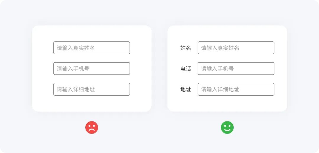 輸入框中的占位符可以為用戶提供初步的指引,幫助他們在開始輸入前有一個(gè)短期的記憶提示。理想情況下,占位符應(yīng)作為標(biāo)簽的補(bǔ)充。然而,如果只有占位符而沒有標(biāo)簽,用戶可能會(huì)感到困惑,尤其是在他們點(diǎn)擊輸入框后占位符消失時(shí),可能會(huì)一時(shí)記不起要輸入的內(nèi)容。