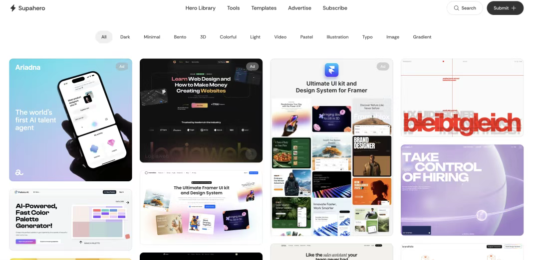 Supahero 的集中焦點(diǎn)使其成為尋找引人注目的網(wǎng)站開場設(shè)計(jì)的絕佳資源,特別適合想要在第一印象上脫穎而出的設(shè)計(jì)師。