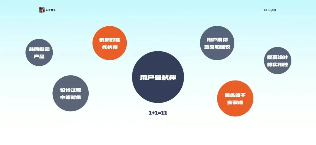 通過與用戶建立持續(xù)的合作關(guān)系,「1+1=11」的思想強調(diào)了合作的力量。用戶作為伙伴能夠為設(shè)計團隊提供獨特的視角和實際的使用體驗,而設(shè)計團隊則能夠通過專業(yè)知識和創(chuàng)意驅(qū)動產(chǎn)品不斷創(chuàng)新。這種共贏的伙伴關(guān)系有助于在設(shè)計過程中實現(xiàn)更好的用戶參與,為產(chǎn)品的發(fā)展提供有益的方向。
