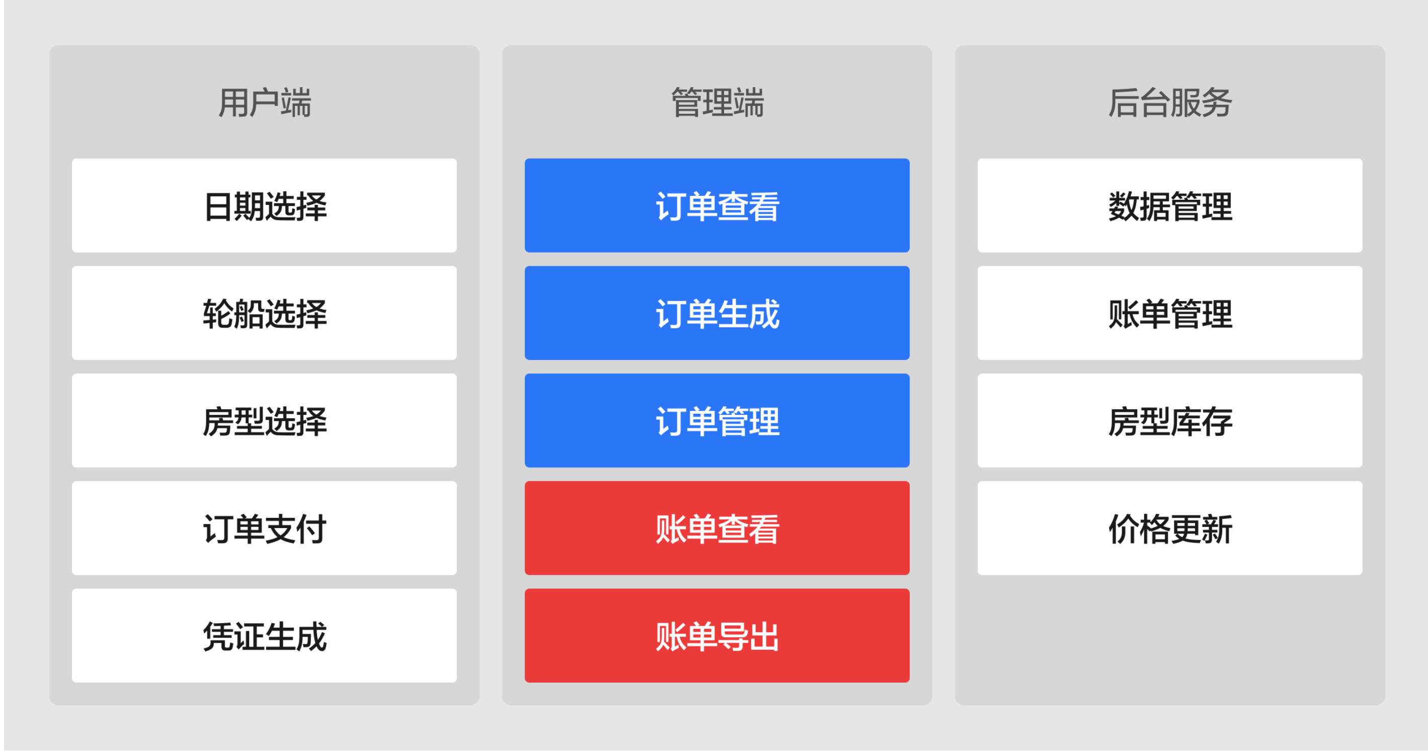 用戶端就是普通的網(wǎng)頁(yè)預(yù)定模式(這里不討論APP和小程序等),讓用戶直接選擇日期、船型、房型后支付獲取憑證,非常容易理解,不用多做介紹,我們重點(diǎn)放在管理端和后臺(tái)服務(wù)的解釋上。