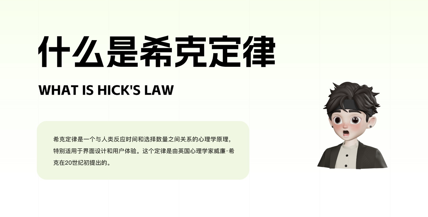 ??硕墒怯捎睦韺W家威廉???颂岢龅恼J知心理學原理,核心揭示了用戶做出選擇的時間與可選項的數量成正比—— 面對的選項越多,用戶的決策時間越長,認知負荷也會隨之增加,甚至會產生選擇焦慮。這一原理在 UI 設計中尤為重要,因為界面的每一個選項、每一次決策,都直接影響著用戶的操作效率。