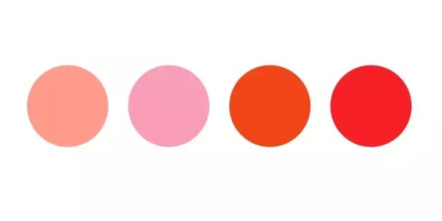 大家可以看到,紅色既有積極的一面,也有消極的一面。按照作者的觀點,與其考慮如何用其他顏色去搭配紅色,不如想想紅色在整個作品中表現(xiàn)了什么。如果想要強調(diào)和表現(xiàn)紅色積極性的一面,最好使用泛黃的大紅色或者明度較高的粉紅色系的顏色。泛黃的紅色比100%紅色更能夠表達溫暖的感覺。在粉紅色系中,泛黃的暖粉紅色比泛紫的冷粉紅色更能傳達出積極的印象。