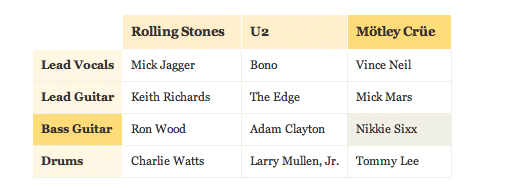 一如以往,我們從最明顯的地方開始。第一步是決定表格的整體結(jié)構(gòu)。結(jié)構(gòu)取決于呈現(xiàn)數(shù)據(jù)的類型和復(fù)雜性。選擇 垂直的列還是水平行,通常取決于個人偏好。大致規(guī)劃下表單的內(nèi)容,然后決定采取哪種方法能更好地傳遞信息。很顯然,如果信息包含多變量,那么選擇矩陣來表示。下面分別以幾個簡單案例來開始。