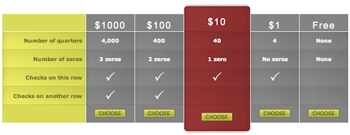 這里是“Ask The CSS Guy”里的另一個例子,允許用戶選擇表格的給定列(價格表),當(dāng)前選擇會高亮突出顯示,并且能展開顯示更多信息。這種方式和上一個例子是一致的,但是有不同的效果。查看demo 具體實現(xiàn)請點擊: