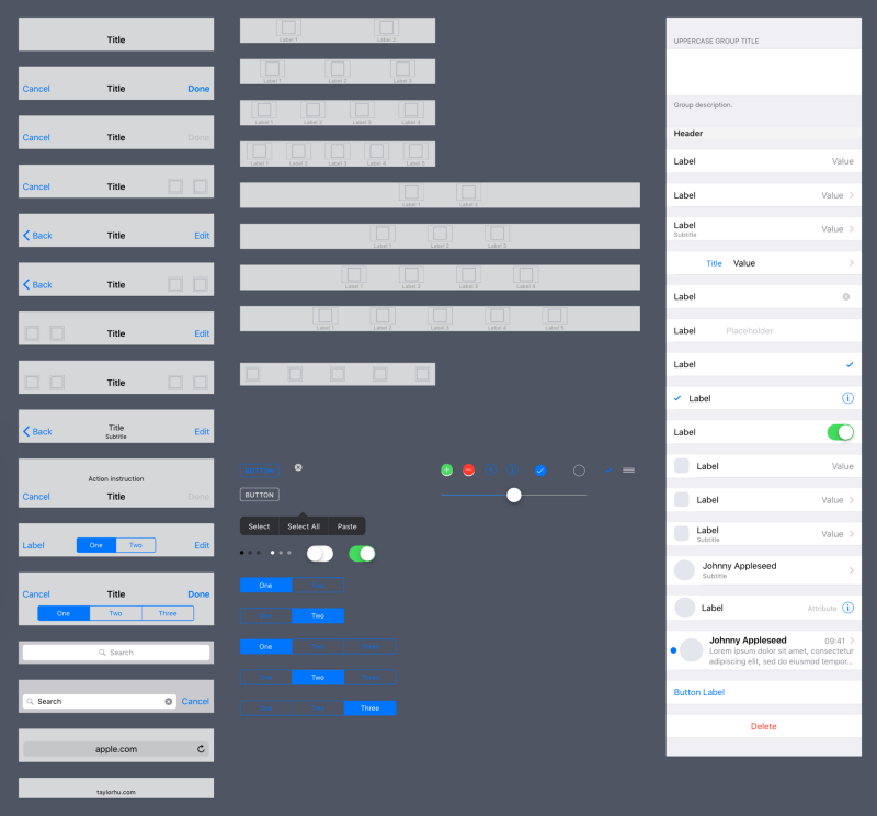 其中第二點是本節(jié)的重點,在你的 wireframe 里,應(yīng)該使用系統(tǒng)原生的對象來構(gòu)成畫面,例如這些東西:
