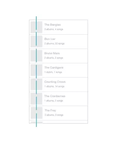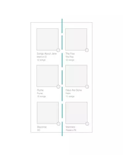 軸最常見于對稱元素的使用,當(dāng)元素被布置成軸對稱的布局的時(shí)候,會給人有序感。就像生活中絕大多數(shù)的事情一樣,我們更傾向于享受有序的的東西,它們令人感覺平穩(wěn)、舒適、平易近人。最簡單的一個(gè)例子就是iTunes 程序中的專輯列表的設(shè)計(jì),所有的專輯列表在界面的左側(cè)保持對齊,圍繞虛線軸軸對稱。