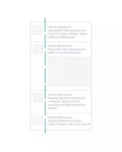 從產(chǎn)品設(shè)計(jì)的角度上來看,Twitter 的時(shí)間線設(shè)計(jì)就是一個(gè)很好的案例,左側(cè)的頭像和右側(cè)的推文共同塑造出縫隙中軸線的感覺。