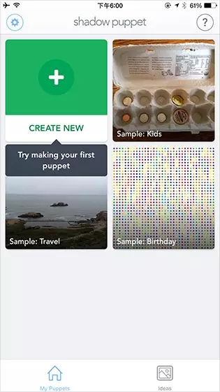 Shadow Puppet可以把照片和視頻剪輯結(jié)合聲音、貼紙等制作成動畫,制作簡單,被譽為視頻版的PPT。它的首頁預(yù)置了展示用的視頻樣本,用戶可以通過觀看視頻案例對Shadow Puppet的視頻制作有感性的認(rèn)知。