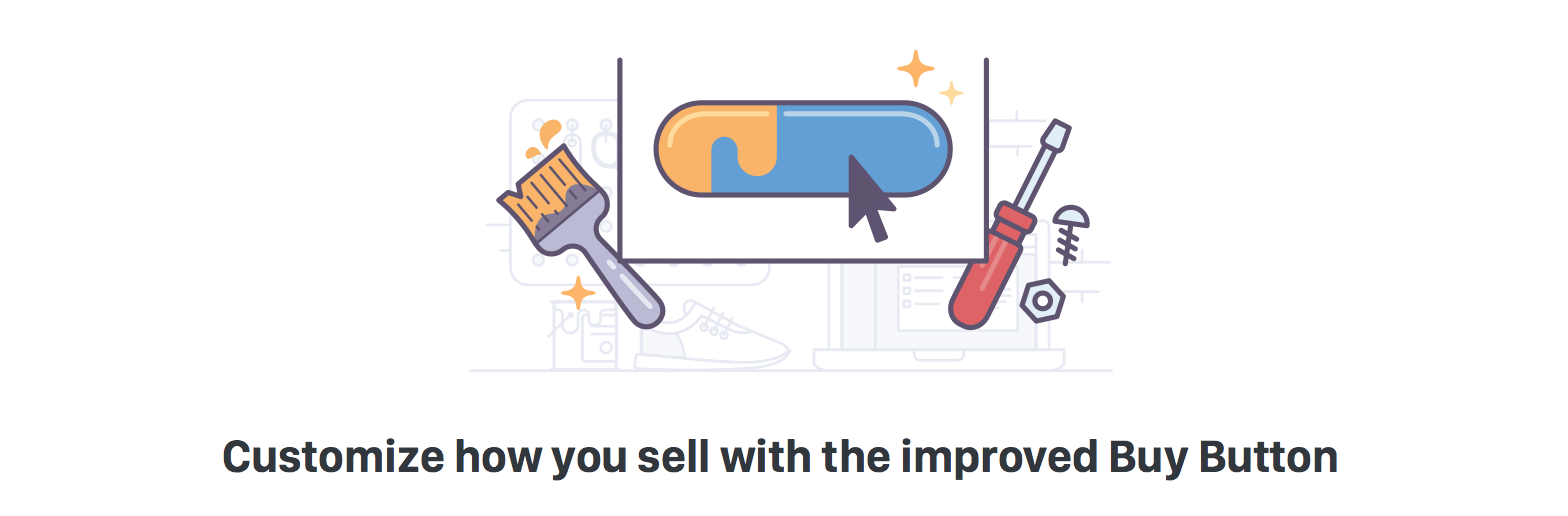 這個(gè)元素與那個(gè)元素融合,就能表達(dá)我們想要傳遞的內(nèi)容??赡苓@類比喻使用起來(lái)需要更老道的經(jīng)驗(yàn),但在產(chǎn)品插畫(huà)里的確更受重視,或者說(shuō)一般設(shè)計(jì)都會(huì)考慮它,因?yàn)樗亲層脩臬@知你的產(chǎn)品或功能賣點(diǎn)的捷徑。如下圖所示,沒(méi)錯(cuò),你知道我們提供了“購(gòu)買”的按鈕,但瞧瞧旁邊擺放的畫(huà)筆,基于對(duì)畫(huà)筆的了解,你就會(huì)明白你能定制“購(gòu)買”按鈕的顏色。將刷子的功能與按鈕的功能混合起來(lái),刷子可以自定義顏色,因此我們的按鈕也可以。與品牌和營(yíng)銷設(shè)計(jì)一樣,這種比喻在圖標(biāo)設(shè)計(jì)中也時(shí)常出現(xiàn)。