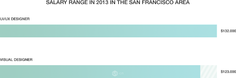市場(chǎng)本身就是多學(xué)科性的。由Dashburst的圖表得出,擁有至少兩種技能的人,例如UI/UX設(shè)計(jì)或者UI/前端開發(fā),會(huì)得到比UI(視覺)設(shè)計(jì)師每年多10k的薪水。