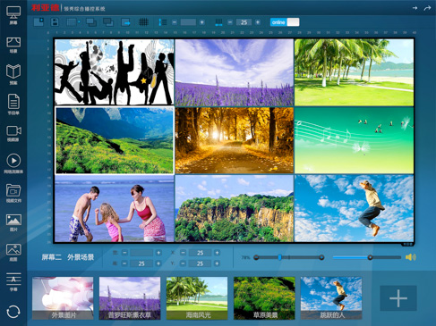 由于大屏的硬件、使用場(chǎng)景和用戶群體,專業(yè)的大屏生產(chǎn)商是提供軟件的,大屏上除了可以直接接入計(jì)算機(jī)RGB信號(hào)、視頻信號(hào)外,還可以接入網(wǎng)絡(luò)信號(hào)。通過(guò)對(duì)信號(hào)系統(tǒng)和GIS系統(tǒng)的各種計(jì)算機(jī)圖、文及網(wǎng)絡(luò)信息、視頻圖像信息的動(dòng)態(tài)綜合顯示,實(shí)現(xiàn)對(duì)地理狀況、發(fā)生地震時(shí)的狀況等信息的實(shí)時(shí)監(jiān)視。大屏是可以配置不同區(qū)域放什么內(nèi)容,內(nèi)容區(qū)塊之間是可以互相調(diào)換位置和大小的。