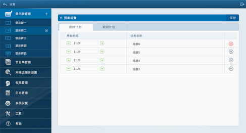 針對(duì)應(yīng)用場(chǎng)景和特殊場(chǎng)景,可以進(jìn)行不同的預(yù)案,設(shè)定不同主題的屏幕內(nèi)容和屏幕切換顯示的時(shí)間。