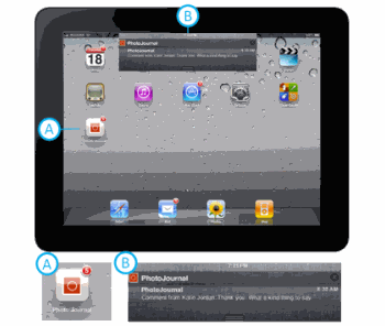 下圖所示的是相片日志應(yīng)用推送過來(lái)的評(píng)論提示: