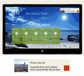 你也可以使用toast notifications 向用戶進(jìn)行提示。這類即時(shí)信息會(huì)在屏幕右上方出現(xiàn),并且會(huì)對(duì)用戶在當(dāng)前應(yīng)用中的任務(wù)起到干擾和中斷的作用。通常,在某個(gè)應(yīng)用第一次運(yùn)行的時(shí)候,我們可以讓用戶選擇是否接受這種提示方式。toast類似于iOS當(dāng)中出現(xiàn)在屏幕頂部的通知,不過在Windows 8中,設(shè)計(jì)師可以從一組toast模板中進(jìn)行選擇,使它的呈現(xiàn)方式與當(dāng)前應(yīng)用具有更強(qiáng)的相關(guān)性。