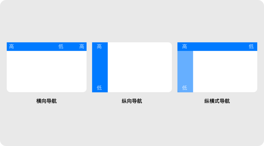 用戶的瀏覽動(dòng)線一般是左上到右下,所以全局導(dǎo)航一般被設(shè)置在頁(yè)面左側(cè)或頁(yè)面頂部。按照導(dǎo)航選項(xiàng)的權(quán)重或者優(yōu)先級(jí)一般分為三種樣式: