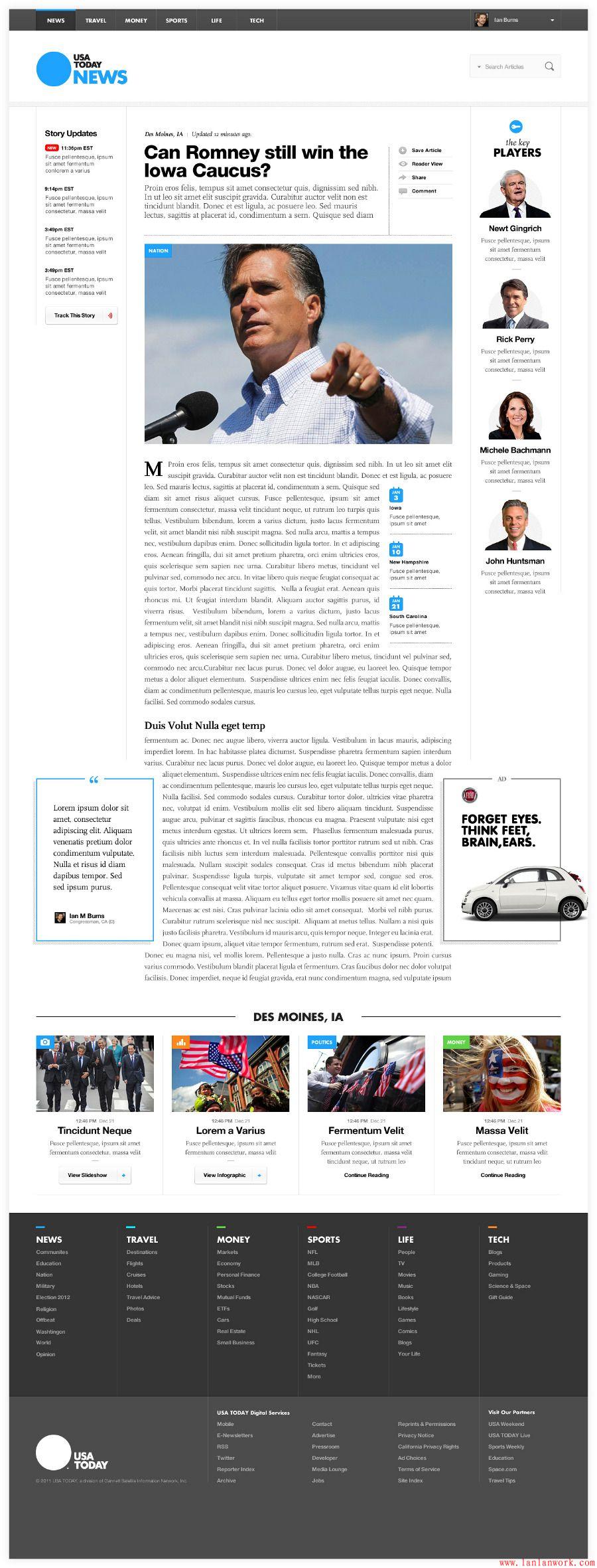 新聞類的網(wǎng)站就是以內(nèi)容為主的,因此我們要把重點放在文章的內(nèi)容上。醒目的標題最能引起用戶的注意,因此要把新聞標題設(shè)置的醒目而且放在最顯眼的位置。文章的內(nèi)容要求精、簡,提取新聞的精華簡單的提供主要的信息。精簡用戶閱讀的內(nèi)容的時間,讓用戶關(guān)注網(wǎng)站上更多的其他內(nèi)容,延長用戶停留在網(wǎng)站上的時間。最后我們來看內(nèi)容的時效性。新聞的時效性尤其重要,大家都喜歡了解最新的新聞動態(tài),因此及時的更新網(wǎng)站,及時的提供最新的新聞,讓更多的用戶看過來!