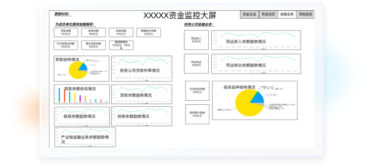 右側(cè)是客戶給的原型,只是把要展示的數(shù)據(jù)簡單羅列了一下??紤]到大屏應(yīng)用場景,比如公司會(huì)議,集團(tuán)視察,行業(yè)參觀等,都是宏觀數(shù)據(jù)展示為主。所以在設(shè)計(jì)時(shí)不僅要考慮美觀性,更要考慮到整體的交互布局以及交互方式,確保關(guān)鍵數(shù)據(jù)和指標(biāo)在界面上以醒目的方式呈現(xiàn),以便用戶快速識(shí)別和理解。設(shè)計(jì)清晰簡潔的布局,避免信息過載,使用戶能夠輕松找到需要的信息。