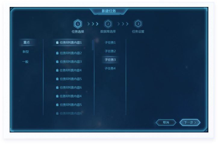 視覺方面使用大屏常用的深色背景,主色采用藍(lán)色配色,通過(guò)整體排版,元素的設(shè)計(jì),來(lái)凸顯科技感。頁(yè)面布局方面,采用模塊化布局,便于區(qū)分信息類別;扁平化的視覺元素+框式設(shè)計(jì),最大程度地減少頁(yè)面元素的干擾,提升頁(yè)面內(nèi)容承載量。
