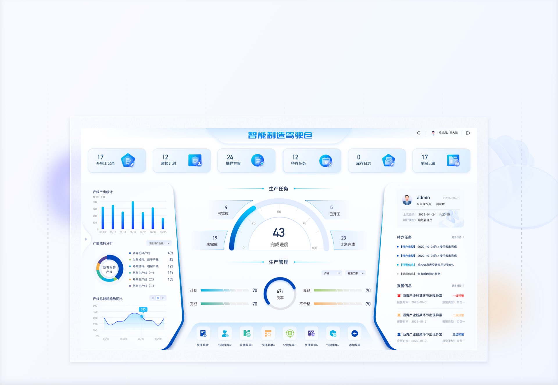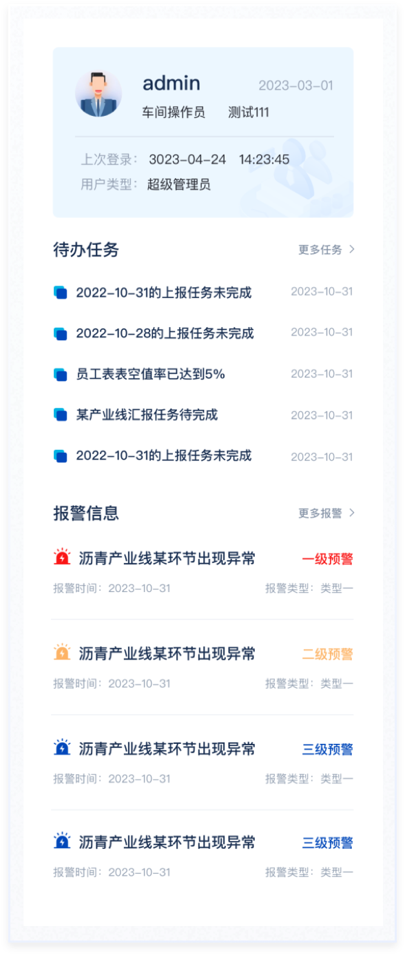 右側(cè)個人信息、待辦事項和報警信息區(qū)