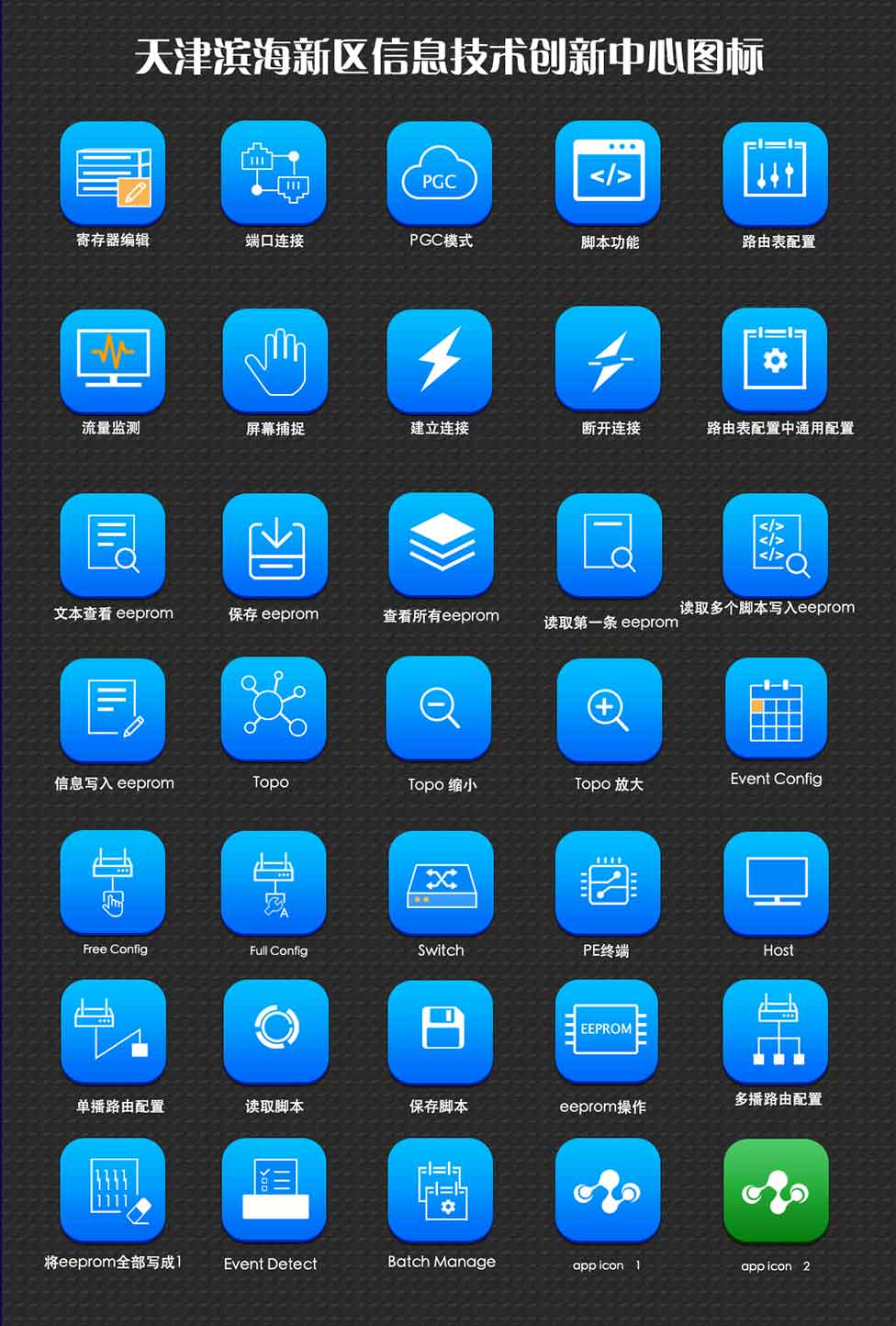 蘇野芯片高速串行rapidio芯片配置軟件是一款芯片功能監(jiān)測(cè),配置及調(diào)試的軟件,其復(fù)雜程度高,專(zhuān)業(yè)性極強(qiáng),需要反復(fù)與客戶(hù)溝通,理解背后含義才能設(shè)計(jì)出符合產(chǎn)品特征的圖標(biāo)。